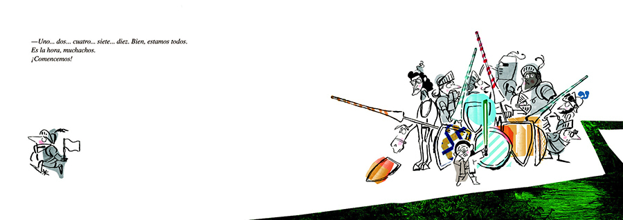 Una divertida historia donde diez intrépidos caballeros se disponen a salvar a una delicada princesa. Pero, en el camino, uno a uno van sufriendo los más disparatados accidentes, hasta que no queda ninguno que cumpla con la misión. ¿Qué pasará con la dama?